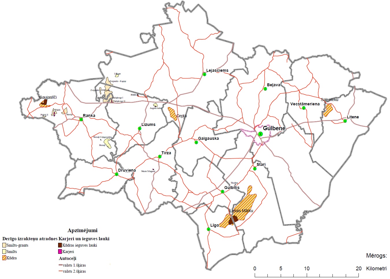 Smilti un granti iegūst Gulbenes novada Rankas pagastā, Lizuma pagastā, Daukstu pagastā, Jaungulbenes pagastā un Litenes pagastā.