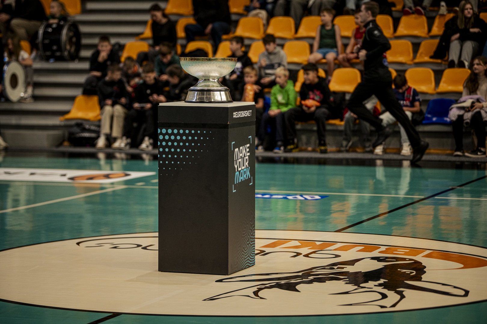 2.novembrī Gulbenē un Stāmerienā bija apskatāma FIBA EuroBasket 2025 trofeja