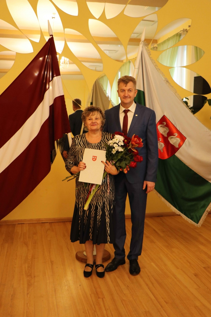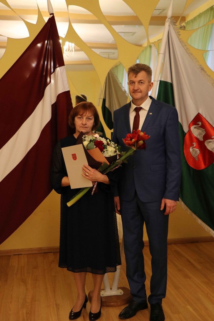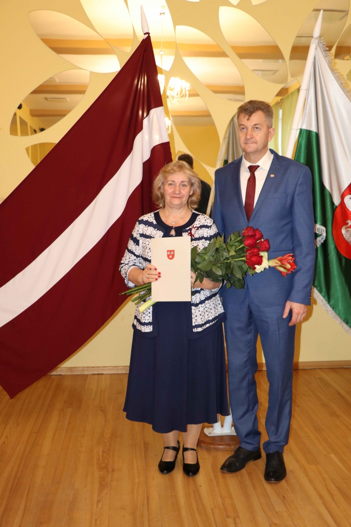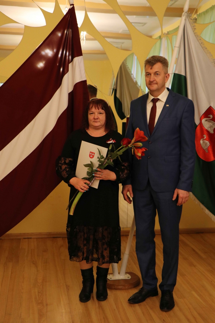 Larisai Vasiļenko- par ilggadēju, apzinīgu un priekšzīmīgu darbu veselības aprūpē ik dienu rūpējoties par novada iedzīvotāju veselību;