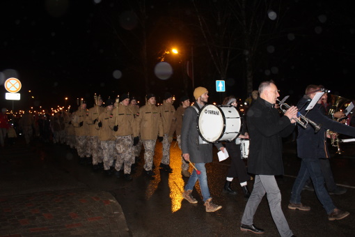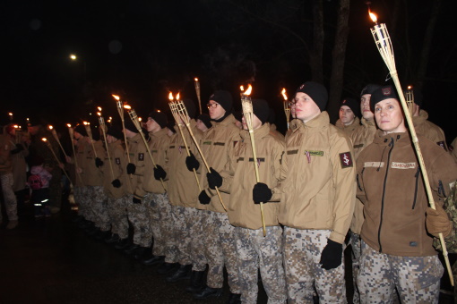 Kopā ar Zemessargiem visi jaunsargi devās svētku lāpu gājienā uz Brīvības pieminekli par Latvijas brīvību kritušajiem Gulbenes draudzes locekļiem, lai piedalītos piemiņas pasākumā un noliktu svecītes.