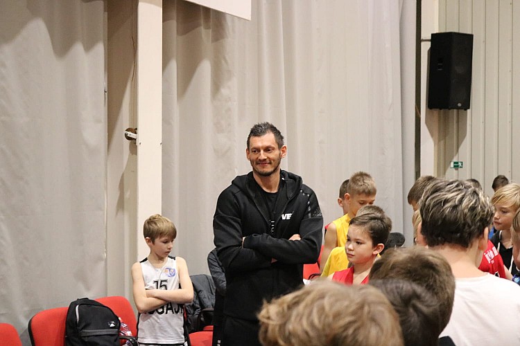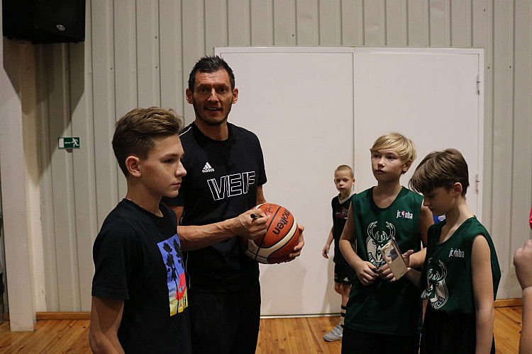 Satikties ar leģendāro sportistu, kurš basketbolam veltījis jau 23 gadus, nospēlējis 168 spēles un jau 8 gadus ir izlases kapteinis, bija ieradušies bērni, jaunieši, treneri, sporta entuziasti un fani.