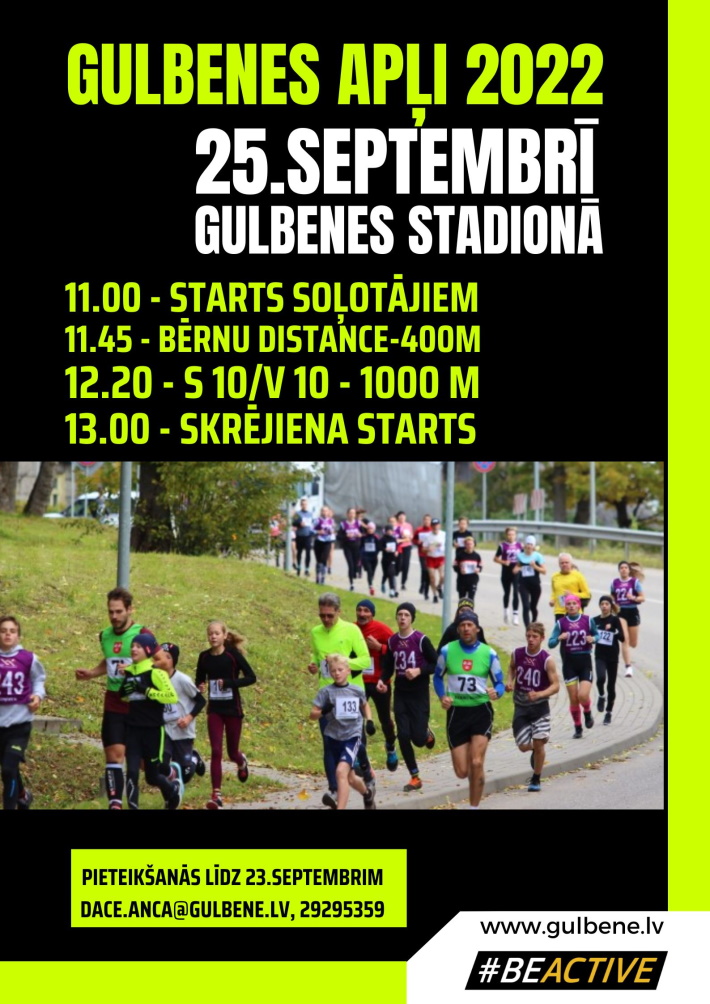 - 25. septembrī Eiropas Sporta nedēļas ietvaros Gulbenē tradicionālais tautas skrējiens un soļošanas sacensības "Gulbenes apļi 2022".
