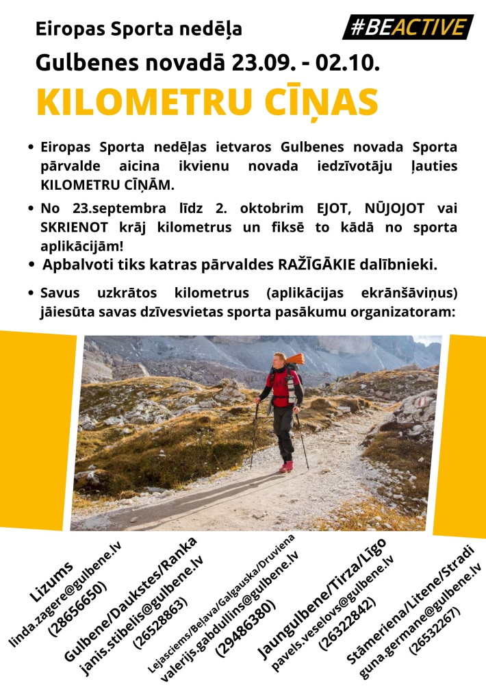 - 23. septembrī Gulbenes novadā sākas Eiropas sporta nedēļas Kilometru cīņas.
