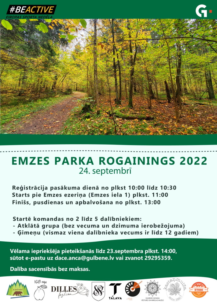 - 24. septembrī 11:00 Gulbenē Eiropas Sporta nedēļas ietvaros notiks "Emzes parka rogainings 2022".