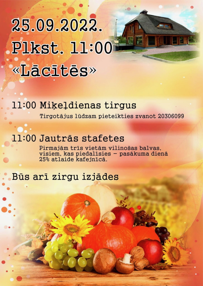 - 25. septembrī 11:00 Rankas pagasta "Lācītēs" Miļeļdienas tirgus un jautrās stafetes.