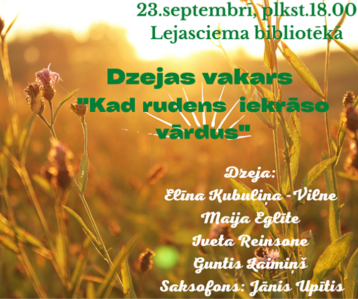 - 23. septembrī 18:00 Lejasciema bibliotēkā dzejas dienu pasākums.