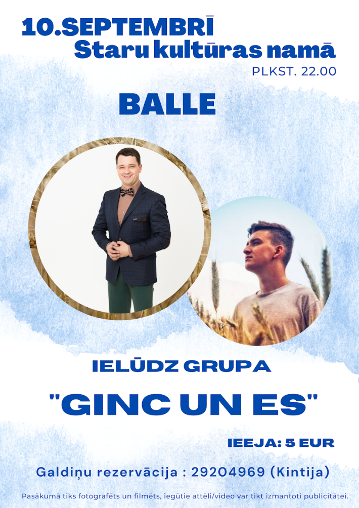 - 10. septembrī 22:00 Staru kultūras namā balle ar grupu "Ginc un Es". Ieeja 5 EUR.