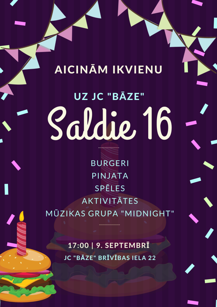 - 9. septembrī 17:00 Gulbenē JC "Bāze" 16. dzimšanas dienas svinības.