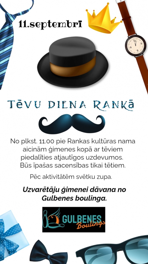 - 11. septembrī 11:00 pie Rankas kultūras nama Tēvu dienas aktivitātes.