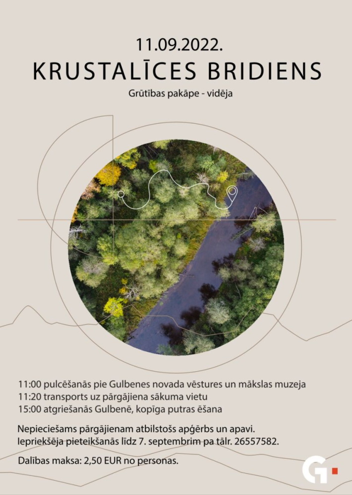 - 11. septembrī 11:00 Gulbenē pārgājies "Krustalīces bridiens". Pieteikšanās: +371 26557582. Dalības maksa 2,50 EUR.