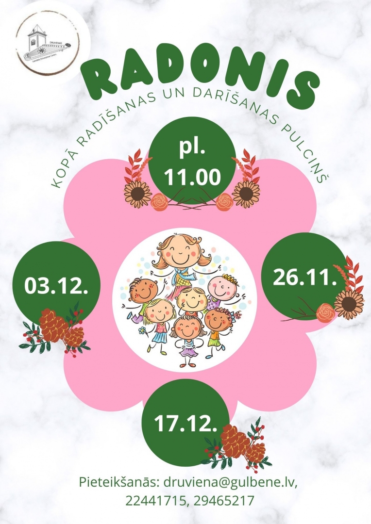 11:00 Druvienas Latviskās dzīvesziņas centrā darīšanas pulciņš skolēniem "Radonis"
