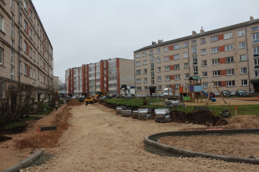 Šobrīd pabeigti pirmās kārtas kanalizācijas, ūdensvada, lietus kanalizācijas darbi, ceļa, ietves un stāvlaukumu izbūves darbi. Pirmajā kārtā vēl jāpaveic rotaļu laukuma izbūves darbi, līdz galam jāsakārto apgaismojuma līnija, jāuzstāda mājdzīvnieku ekskrementu atkritumu tvertnes. Otrajā kārtā daudz darāmā: jāizbūvē pamatbrauktuve, pazemes atkritumu tvertnes, stāvlaukumi, atbalstsiena, jāveic teritorijas labiekārtošana.
