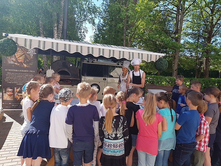 Savukārt praktiskajās meistardarbnīcās mobilās ražotnes uzņēmēji no “Vīnkalnu picērijas” pastāstīja, ka šajā darbā nepietiek tikai ar pavāra profesijas apgūšanu, bet cept picas viņi ir iemācījušies strādājot restorānā. Visvairāk bērni priecājās par iespēju pašiem pārtapt par pavāriem, kur katrs varēja pagatavot autentisku itāliešu picu no svaigiem produktiem, iejūtoties picu cepēja lomā.