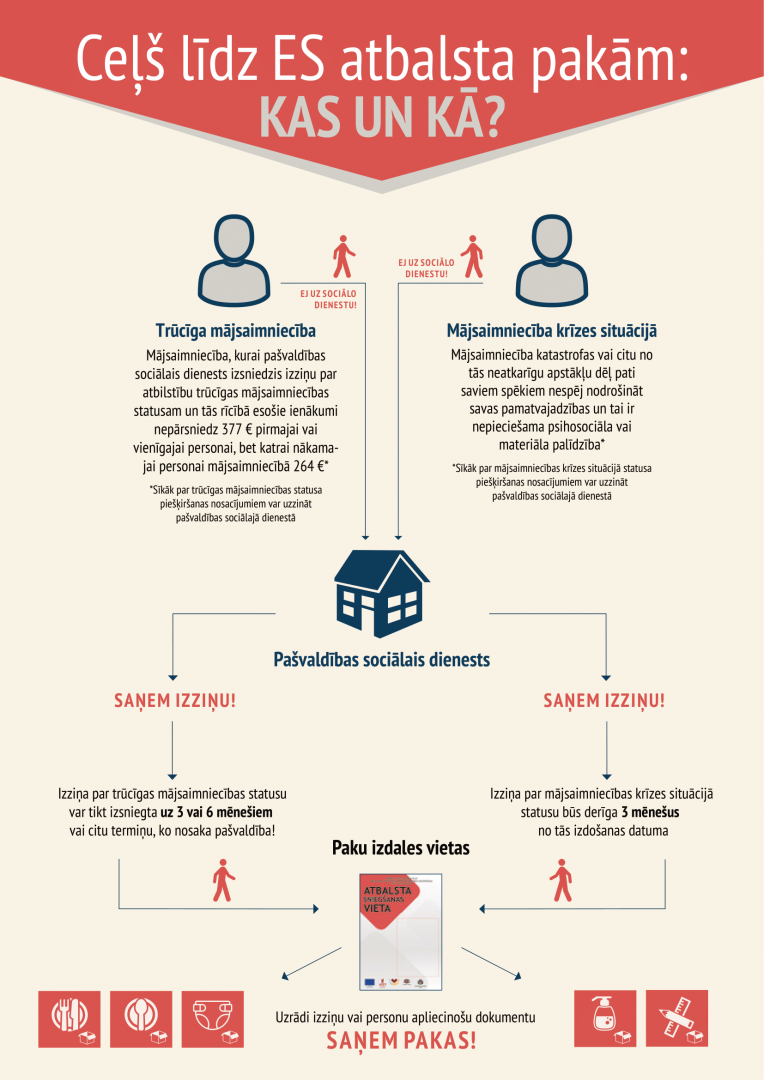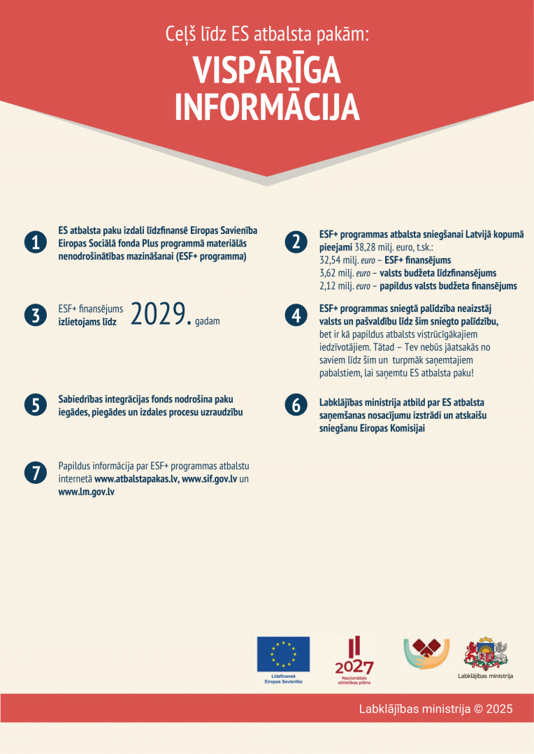 Informatīvs materiāls par Programmas atbalstu “Ceļš līdz ES atbalsta pakām: kas un kā?” (ietver izmaiņas pārtikas atbalsta un pamata materiālās palīdzības saņemšanai no 2025.gada 1.janvāra).