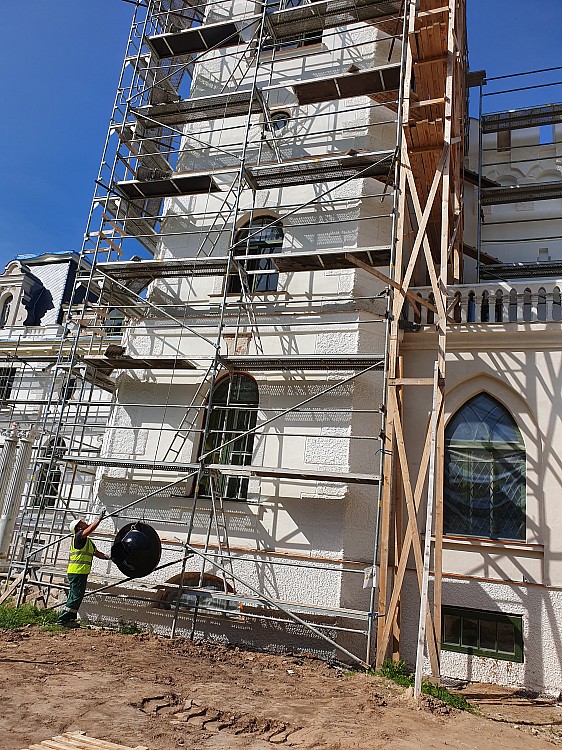 Stāmerienas pils galvenajā tornī atgriezies vēja rādītājs