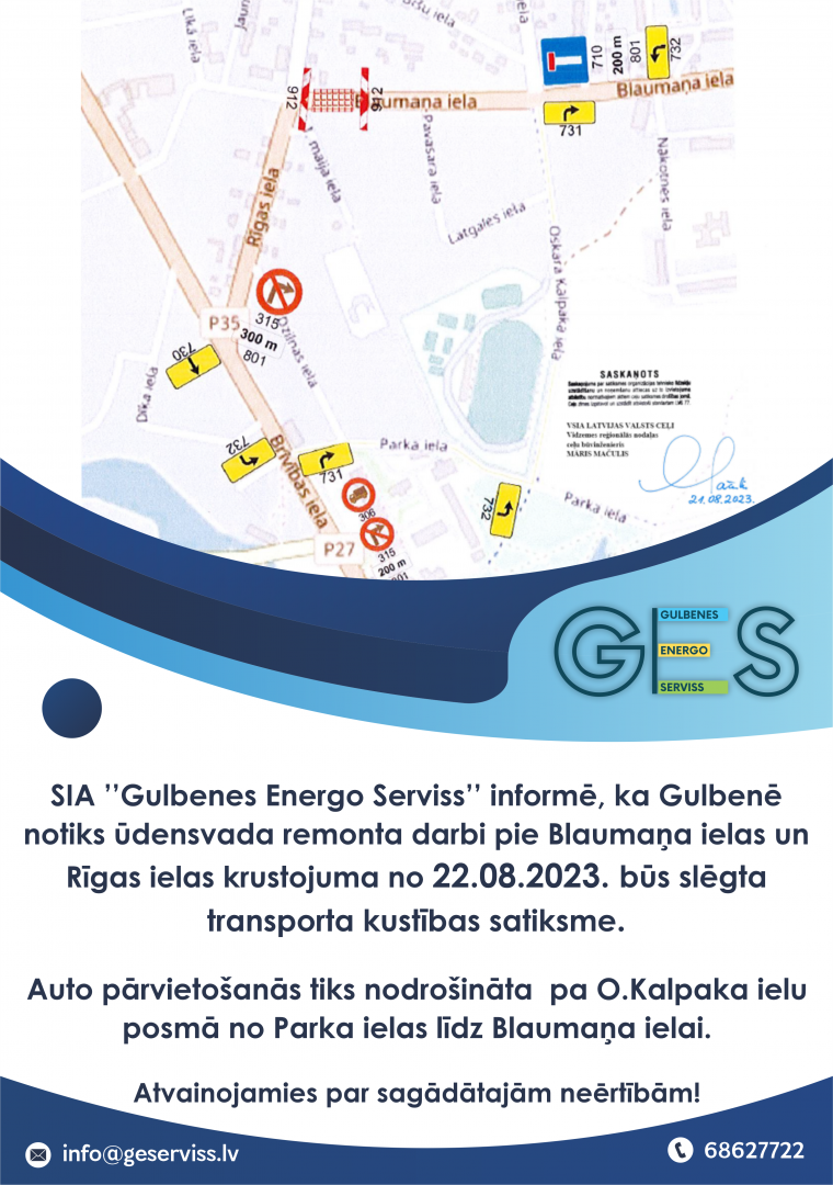 22.augustā būs slēgta transporta kustība Blaumaņa un un Rīgas ielu krustojumā