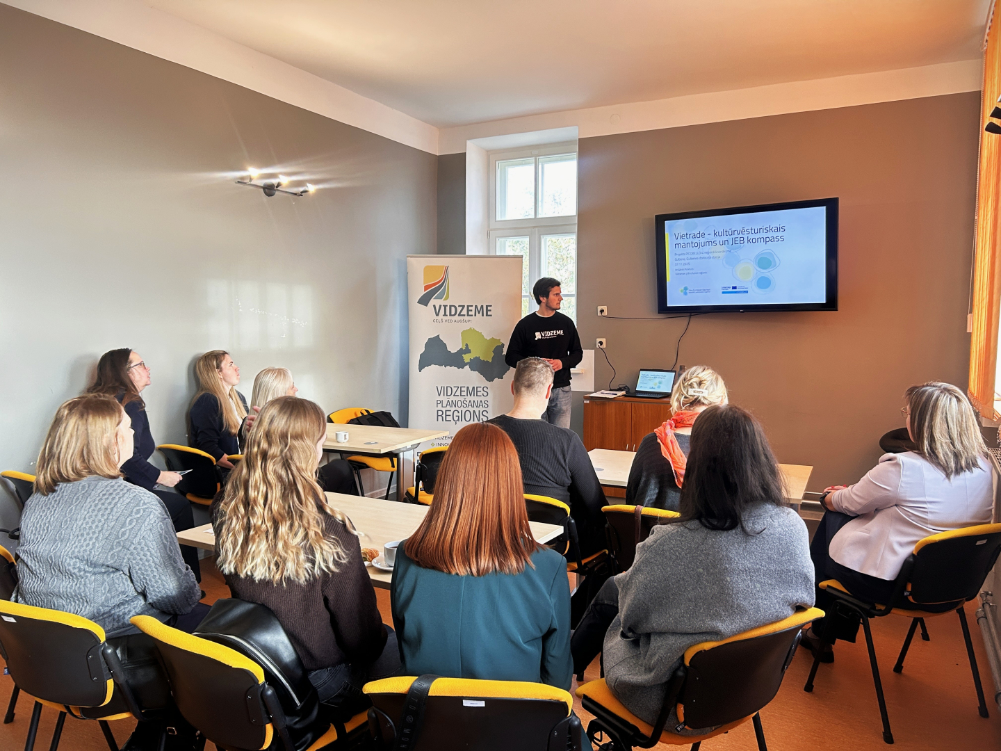 Sanāksmes noslēgumā dalībnieki piedalījās praktiskajā darbā, izmantojot JEB kompasu - Eiropas Komisijas izstrādāts rīku, ar kura palīdzību novērtēt projekta vai idejas atbilstību JEB vērtībām un darbības principiem un izvirzīt vēlamos mērķus. Grupās tika izvērtēti vairāki Vidzemes pašvaldību projekti – Beļavas muiža Gulbenes novadā, Alūksnes VEF kvartāls un pilsdrupas Kalnamuižas teritorijā, Smiltenes novadā – īpaši pievēršot uzmanību iedzīvotāju līdzdalībai, starpnozaru sadarbībai un plānošanas kvalitātei. Darba process parādīja, kā metode palīdz paskatīties uz iecerēm plašāk – izvērtēt to ietekmi no dažādu pušu skatpunkta un domāt par risinājumiem, kas dod lielāku ieguvumu sabiedrībai kopumā.