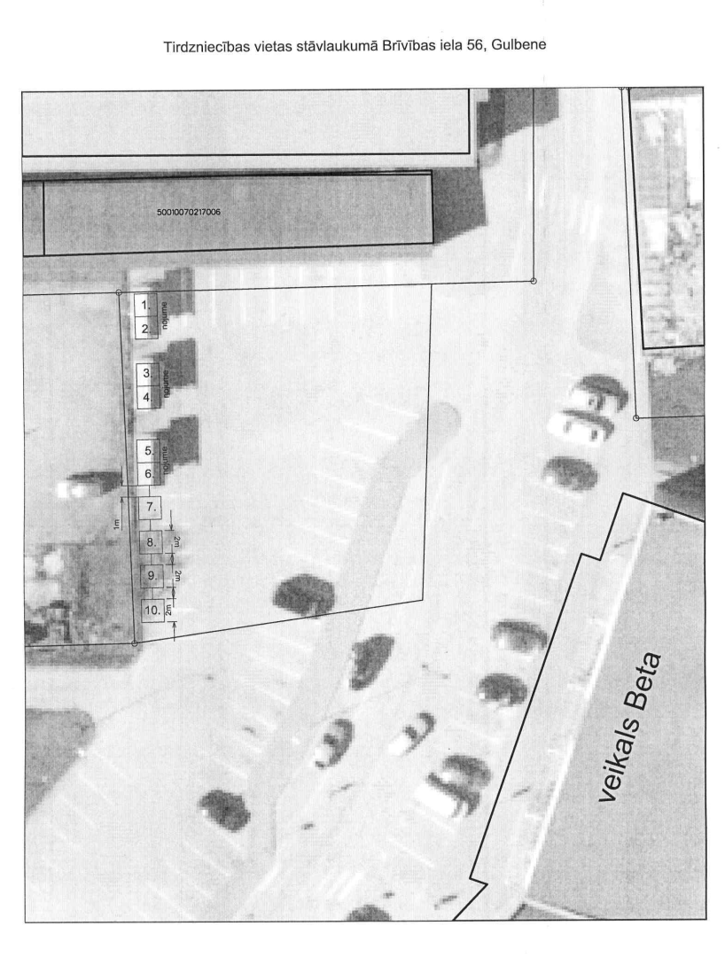 Brīvības iela 56, Gulbene – stāvlaukums pie veikala "Beta" – 10 tirdzniecības vietas (saskaņā ar plānu (2.pielikums)) |
