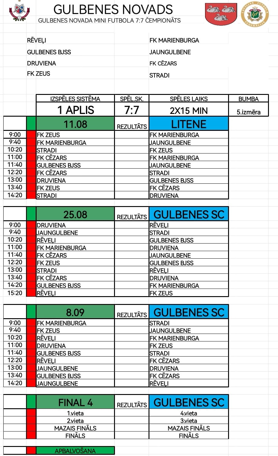 8.septembrī pl.9.00 Gulbenes sporta centra stadionā notiks Gulbenes novada atklātā mini futbola čempionāta 3.kārta.