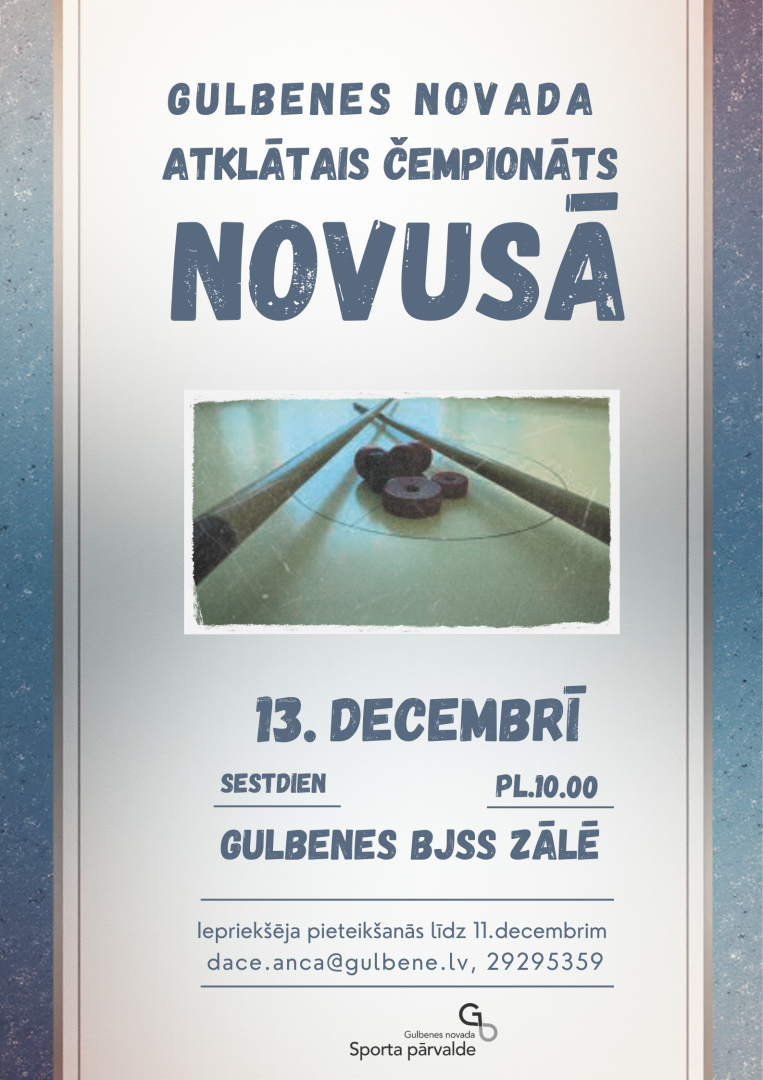 13.decembrī pl.10.00 Gulbenes novada BJSS sporta zālē notiks "Gulbenes novada atklātais čempionāts novusā".