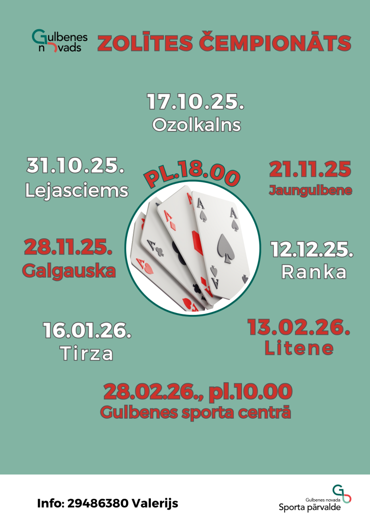 31.oktobrī pl.18.00 Lejasciema kultūras namā notiks Zolītes čempionāta 2.kārta.